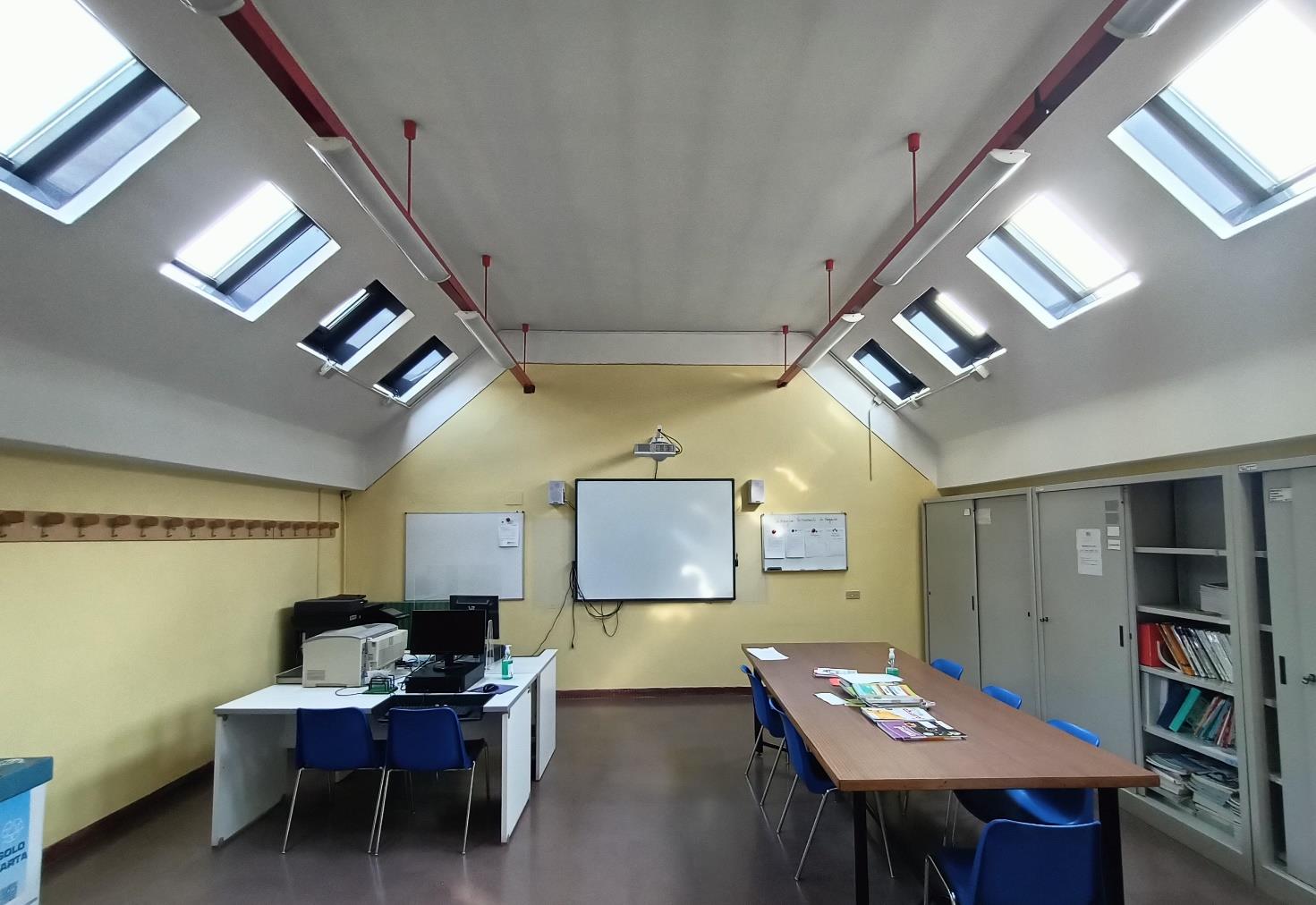 La conformazione delle coperture assicura l’illuminazione e la ventilazione bilaterale in tutti gli ambienti della scuola.