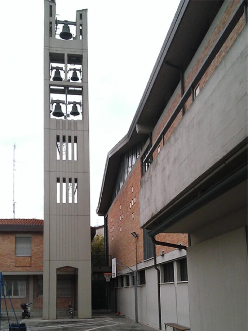 Al piano inferiore vi è la cripta, mentre, sul lato sinistro, affiancato dall’oratorio su cui si affacciano le abitazioni dei preti con i rispettivi servizi, un alto campanile realizzato nel 1990.