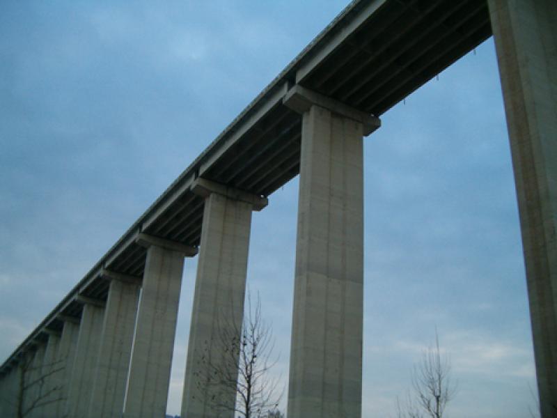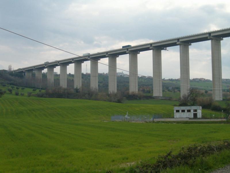 Il viadotto, costituito da un impalcato in travi prefabbricate in cemento armato completi di soletta, sostenute da piloni a sezione cava in c.a., è alto 130 m ed è il terzo più alto del paese.