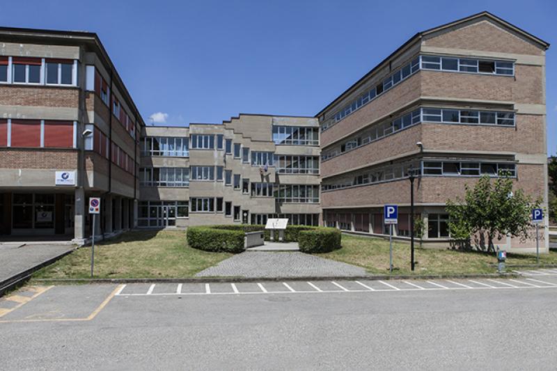 "Nel 1961 la Cooperativa Architetti e Ingegneri viene incaricata dall’Amministrazione provinciale del progetto di un nuovo centro scolastico da realizzare nella zona nord-est della città; tale area, secondo le prescrizioni del Piano Albini, è soggetta a grandi trasformazioni in vista del nuovo collegamento all’autostrada. Il progetto disegna inizialmente gli edifici destinati all’Istituto tecnico industriale, con la possibilità di essere realizzati in diversi stralci e suddivisi in parti distinte; la prima destinata ad aule e uffici amministrativi, la seconda a laboratori e officine, la terza a palestre e mensa. L’obiettivo è quello di raggruppare edifici, omogenei tra loro per funzione e dimensione, in volumi caratterizzati architettonicamente e collegati secondo semplici schemi distributivi; la posizione delle scale e delle aule a gradoni favoriscono la fluidità dei percorsi e sfruttano il dislivello naturale del terreno. Tra il 1961 e il 1964 vengono realizzati il primo e il secondo lotto con aule, laboratori, officine e spazi a servizio delle centrali tecnologiche. I due corpi di fabbrica principali sono disposti in modo parallelo tra loro con andamento nord-sud, collegati da due corpi trasversali; il primo edificio è adibito ad aule e laboratori, il secondo è destinato agli istituti tecnologici e scientifici a carattere sperimentale, mentre il pianterreno è occupato dall’atrio d’ingresso, dalla biblioteca e da una sala riunioni. Nei corpi trasversali si trovano altre aule, laboratori e i collegamenti verticali, che mettono in comunicazione i diversi livelli, sfalsati tra loro di mezzo piano e collegati ai due corpi principali.