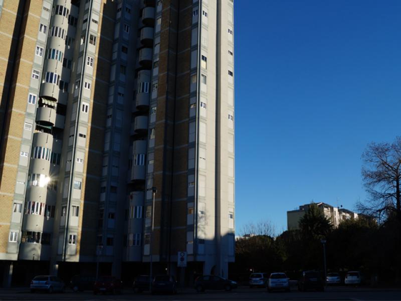 L’edificio a torre è preso qui a modello per la residenza a basso costo in quanto in grado contemporaneamente di svolgere la funzione abitativa e permettere il recupero della “sfera pubblica” all'esterno; certamente per la maggiore ampiezza e fruibilità degli spazi aperti e collettivi che la concentrazione in verticale permette, ma anche per la potenza dell’immagine che essa è in grado di trasmettere nei confronti dello scenario urbano.