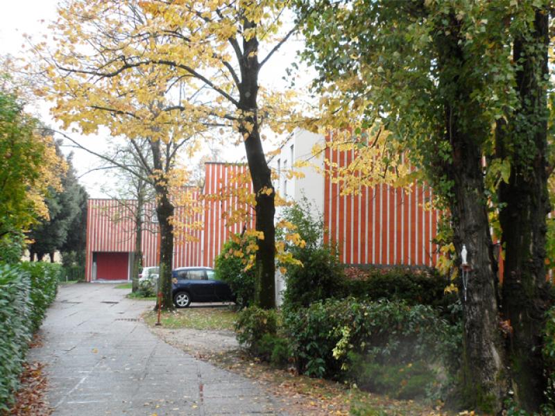Su un’area lasciata intatta alla periferia della città di Faenza, caratterizzata da edifici sparsi in ampie porzioni di aree verdi, l’architetto realizza un complesso abitativo, solo in parte costruito, in cui l’immagine del nucleo residenziale è composto da un dialogo di forme in contrasto con quelle urbane consolidate, un tassello di anti-città utopica, governata da logiche autonome e autoreferenziali.