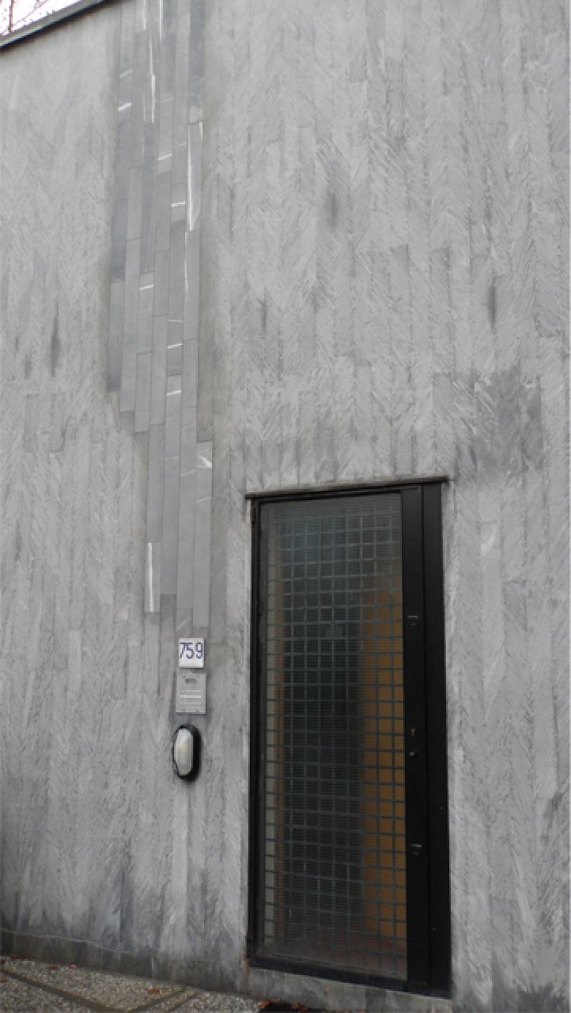 - Materiale di facciata: cemento armato, ferro, vetro, marmo, serpentina, intonaco, cotto