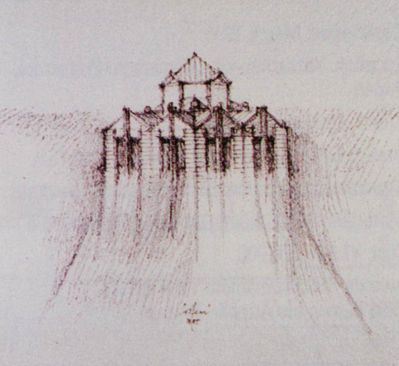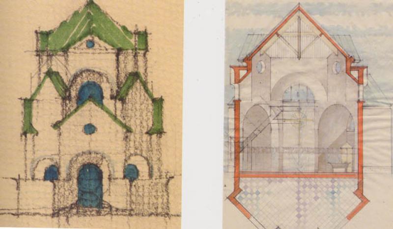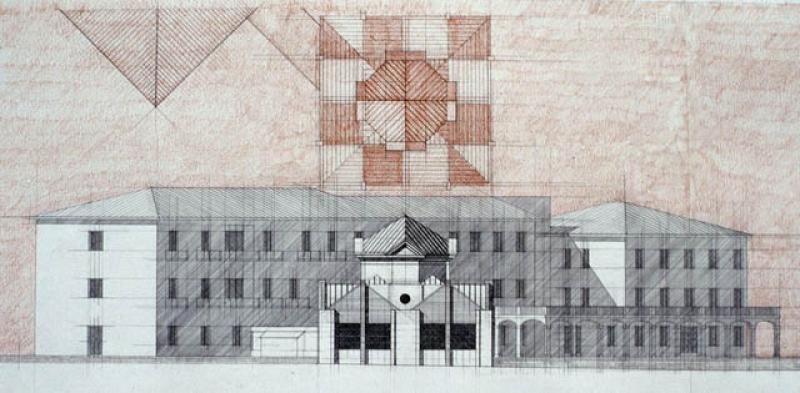 L’apparato ottagonale del sistema Oratorio - Refettorio raffronta i corpi di fabbrica preesistenti all’interno del parco (che sta crescendo) e recupera le assialità parallele degli accesi esistenti, affrontati nel plesso assistenziale e religioso predisposto con Don Franco Guiduzzi. Gli assetti geometrici si compongono con le preesistenze per integrare gli schemi canonici. Privilegiando figure che di per sé non differiscono dagli antichi modelli ai quali non urge mutare alcunché.