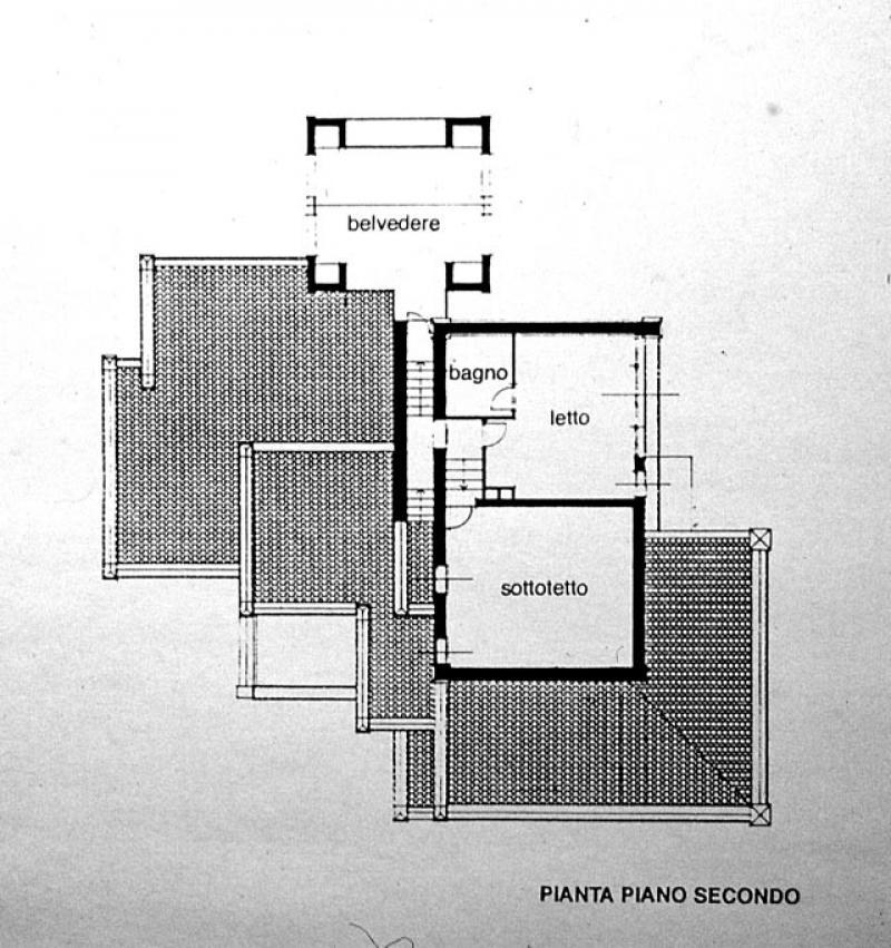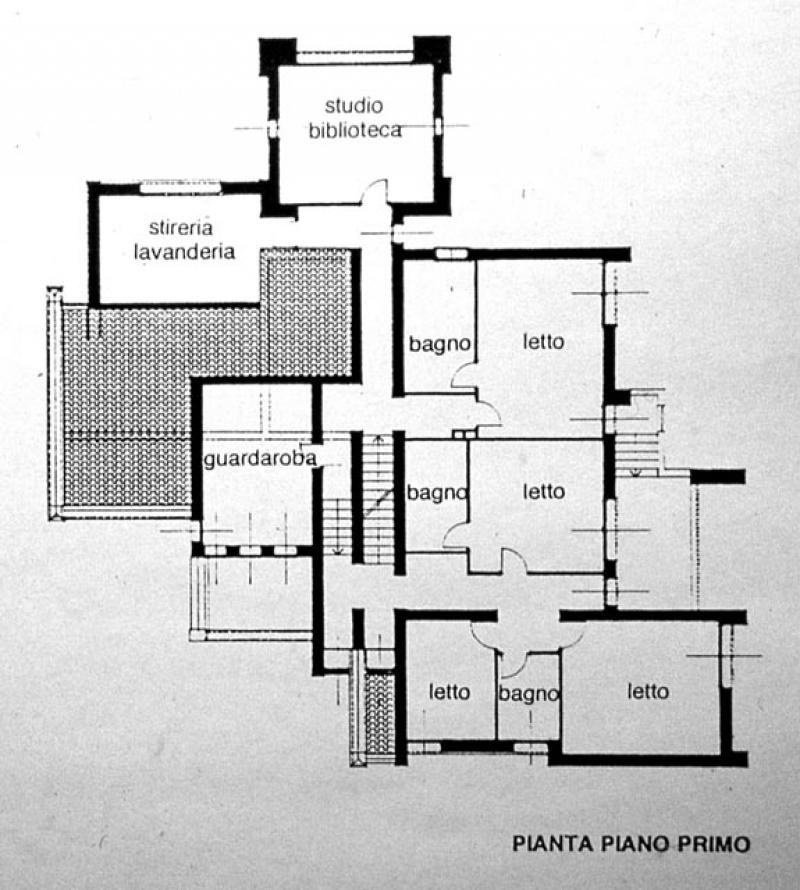 Il carattere dell’edificio ove gli ambienti fruibili nei momenti partecipati della famiglia risultano allineati e rivolti a sud, è frutto di un assetto murario che esalta il profilo strutturale della spina centrale del fabbricato. Un asse che genera l’articolazione fra i collegamenti verticali ed esalta i suoi punti di vista reciproci e contrapposti. Si determina così lo schema distributivo inusuale in cui si dà forma e misura agli ambienti serviti e a quelli serventi. Pur nell’attesa di diverse, successive funzioni in accordo con il futuro inquadramento del parco. Ora poco più che disegnato.