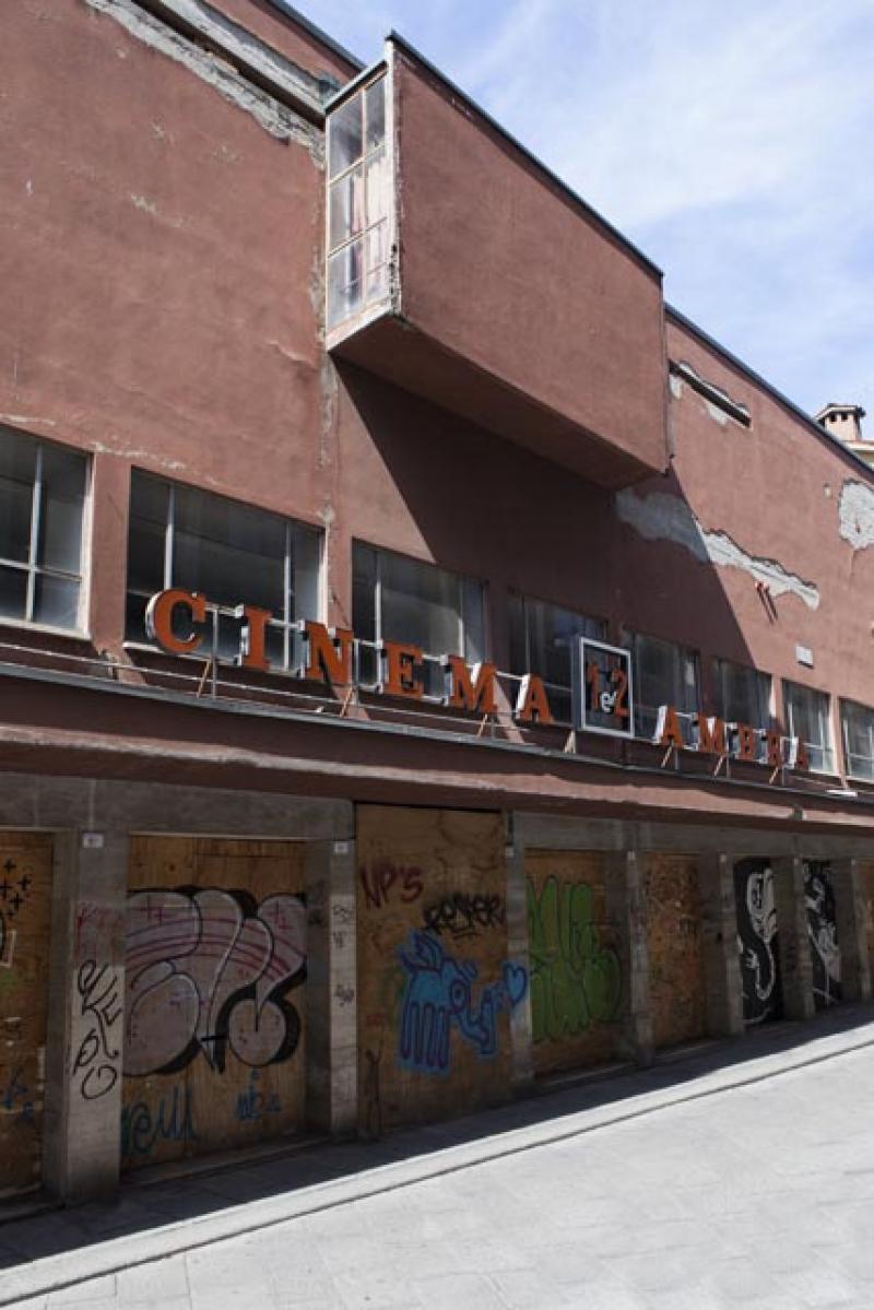 “Quando gli viene affidato il progetto per il cinema, Lucci è da pochi anni a Reggio. Evento raro, non subisce interferenze esterne e non ci sono quasi modifiche in corso d’opera. Sfrutta le potenzialità del doppio affaccio del lotto storico per realizzare, con una lunga rampa, un ingresso secondario alla galleria che costituisce la quinta architettonica di una strada urbana con biglietteria, bar e alcune vetrine. Anche l’atrio principale, l’unico ambiente a luce naturale, è un ampio spazio scenografico con due rampe di scale centrali che portano ad una galleria vetrata, affacciata sulla strada e sul doppio volume. La struttura portante in cemento è complessa, declinata in forme diverse secondo la funzione, con telai e lunghe mensole sagomate aggettanti che portano a sbalzo la cabina di proiezione.