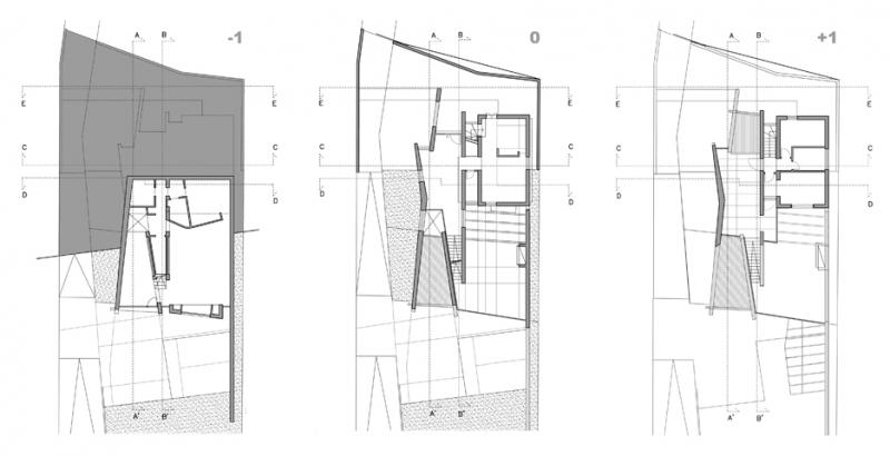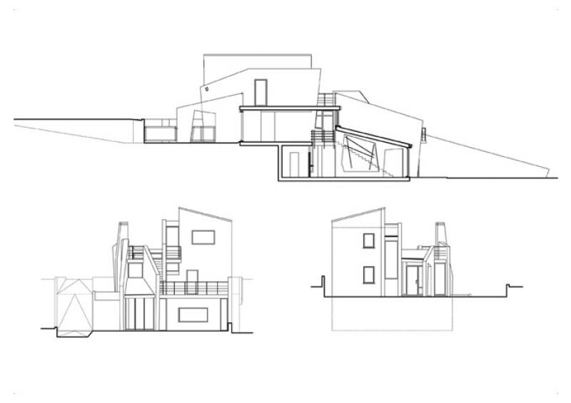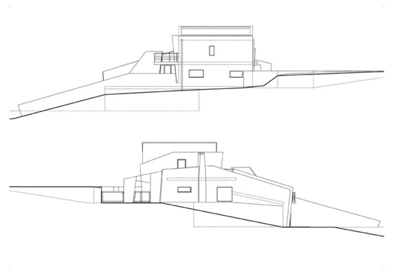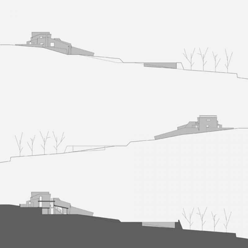 L’impianto si discosta dalle tipologie tradizionali grazie alla sottolineatura delle direttrici longitudinali, costituite da setti non sempre regolari, che seguono il pendio generando spazi passanti e orientando la vista verso scorci di paesaggio.