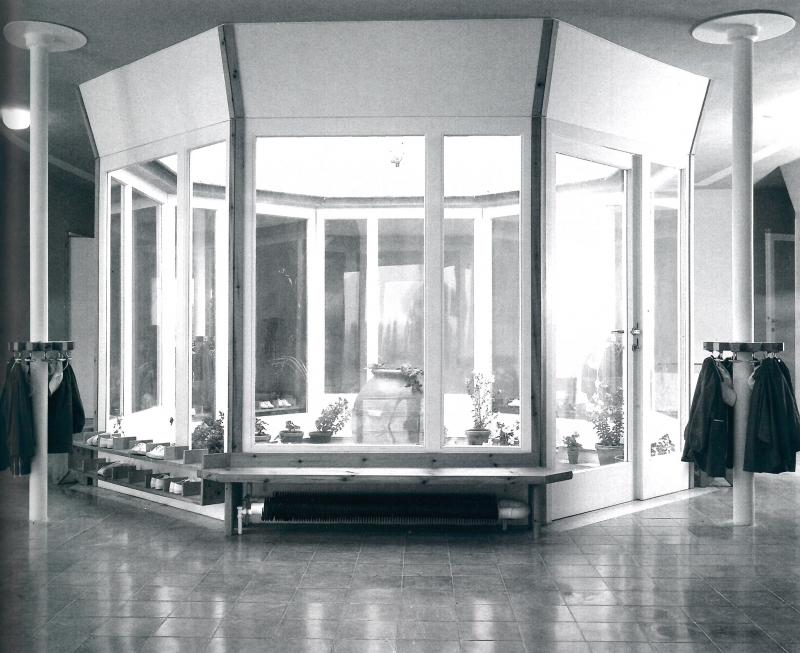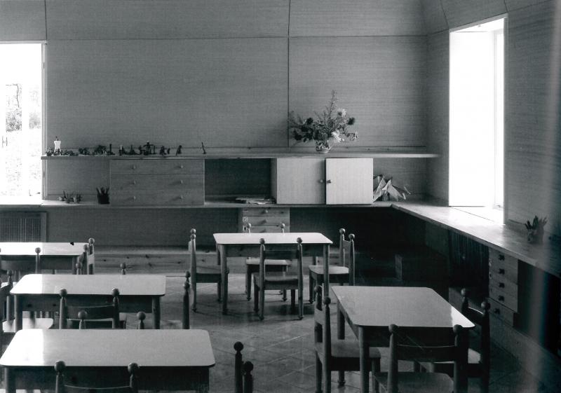 L’attenta progettazione funzionale e tipologica degli spazi interni coniuga l’artigianato delle maestranze locali e il design, permettendo di considerare ancora oggi la piccola scuola in località Fassia un gioiello dell’architettura scolastica italiana.