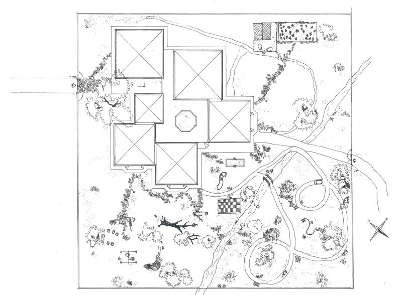 L’edificio si compone di cinque padiglioni a pianta quadrata di dimensioni diverse tra loro, aggregati in maniera tale che ognuno dei locali possa affacciarsi all’esterno. I volumi si sviluppano su un unico livello, così da essere completamente accessibili e da garantire sempre una stretta relazione con lo spazio verde circostante. Le tre aule sono disimpegnate da un patio ortogonale e sono dotate di spogliatoi; sono previsti inoltre numerosi locali accessori, anche non convenzionali, tra cui la palestra, la sala mensa, la sala musica e l’abitazione dell’insegnante.