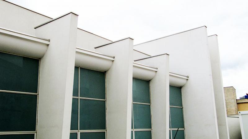 L’edificio inserito tra i padiglioni del polo ospedaliero regionale del San Salvatore emerge chiaramente rispetto al contesto circostante per impianto, forma e struttura.