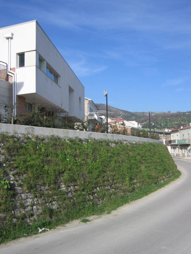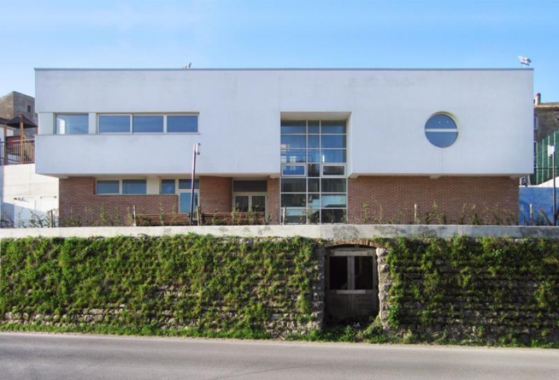 L’intervento è stato promosso dalla Caritas Lombardia, nell’ambito degli aiuti alle zone terremotate del Molise a seguito del sisma del 2002. L’edificio si dispone su due livelli di cui il primo seminterrato. L’accesso principale è collocato al livello inferiore preceduto da un piazzale a sua volta rialzato rispetto alla strada antistante. La sopraelevazione della quota d’imposta del fabbricato consente di recuperare l’ultimo tratto di un preesistente muro in pietra, di proteggere i fruitori della struttura dalle insidie della strada nonché di accentuare la riconoscibilità dell'edificio nello spazio urbano. La posizione dell’edificio sul lotto è in funzione della struttura urbana circostante, di cui riprende gli allineamenti ed i rapporti geometrici. La composizione volumetrica è operata attraverso pochi segni essenziali; a valle sul basamento in mattoni, aggetta un più etereo volume, inciso da una lunga finestra orizzontale e da un grande tondo tali da creare una longitudinalità bilanciata dal vano scala vetrato a tutt’altezza. Il prospetto a monte si caratterizza invece per l’ampio portico, che lo articola con un forte gioco chiaroscurale. I prospetti laterali si compongono sostanzialmente in rapporto alle logiche distributive interne. Una grande falda a pendenza unica, variamente articolata nel perimetro, è ulteriore elemento di unificazione dell’edificio.
