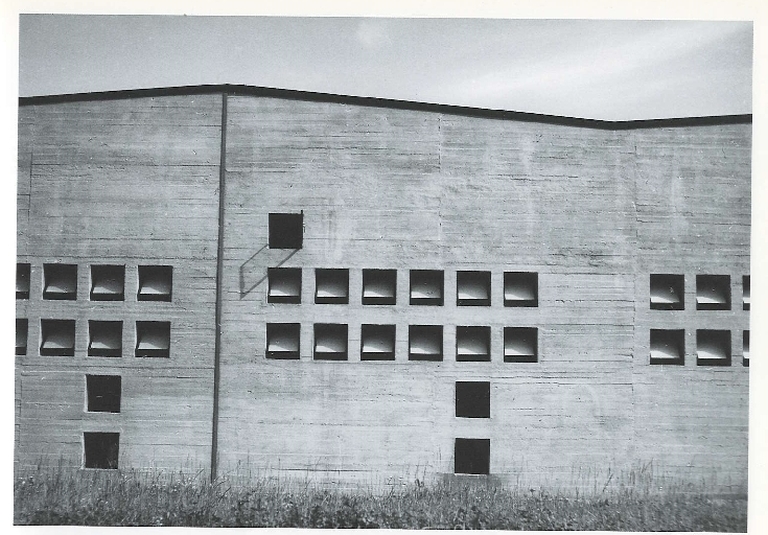 I diversi blocchi sono raccordati anche dalla scelta di ricorrere a materiali condivisi: i telai in cemento armato vengono lasciati a vista e tamponati con muri in mattoni, su cui si stagliano infissi metallici verniciati in colori chiari e scuri. L'unica eccezione alla regola è rappresentata dal pesante muro in calcestruzzo della fabbrica che, in prossimità del patio, si apre con una fitta griglia di finestre quadrate.
