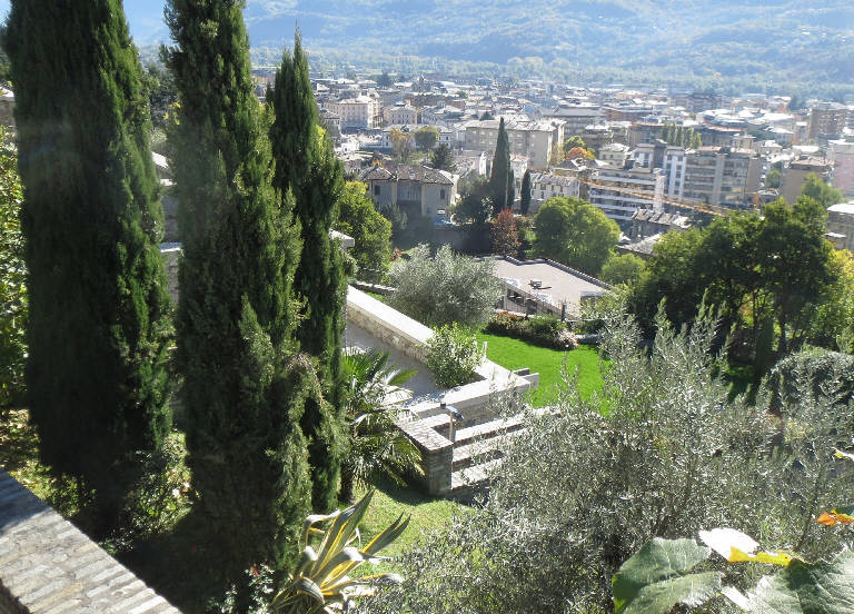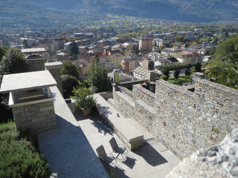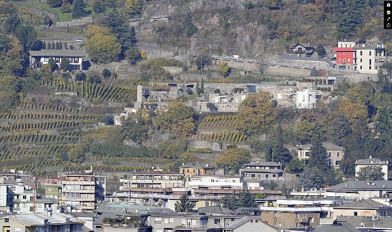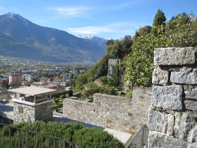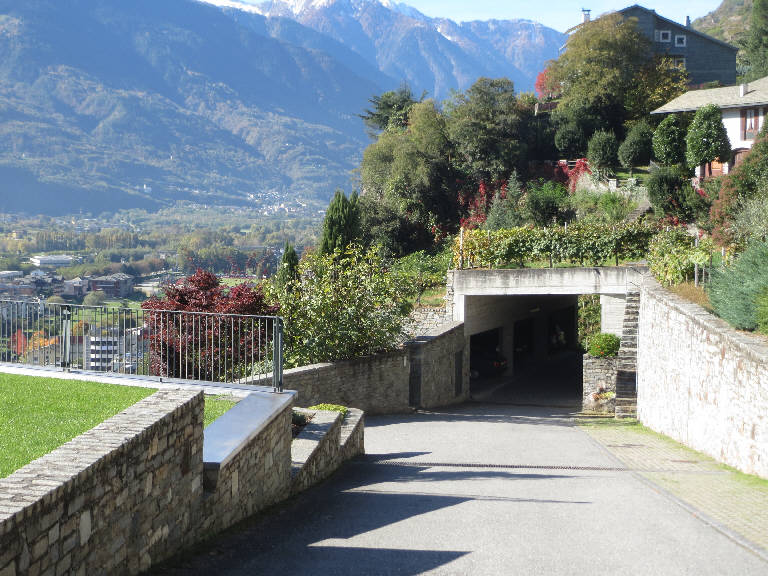 Le tre abitazioni che compongono l'insediamento, incorporate nei terrazzamenti che salgono da Sondrio verso la Valmalenco, occupano un fianco assai ripido della montagna, di cui sembrano formare quasi un sostegno fortificato. La visibilità totale del complesso è possibile solo dall'altro versante della valle, perché la minimizzazione dell'impatto fisico dei volumi è stata curata con grande attenzione, sfruttando il dislivello tra la quota della strada, che in quel tratto sale ripida, e il pendio su cui insiste la costruzione. Così che, al visitatore, l'accesso al luogo si apre su una rampa in discesa che separa la strada dall'edificato e termina in una galleria che, oltre a ospitare sei posti-auto, apre un cannocchiale visivo su un rigoglioso vigneto ed è essa stessa coperta da una terrazza erbosa cinta da un vigneto.