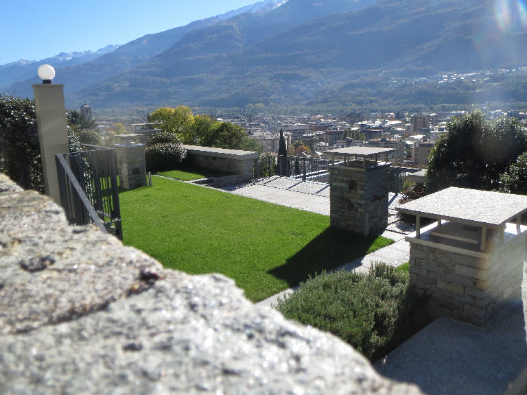 - Coperture: terrazze piane lastricate in pietra levigata o trattate a tetto erboso