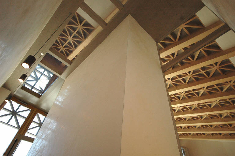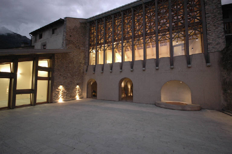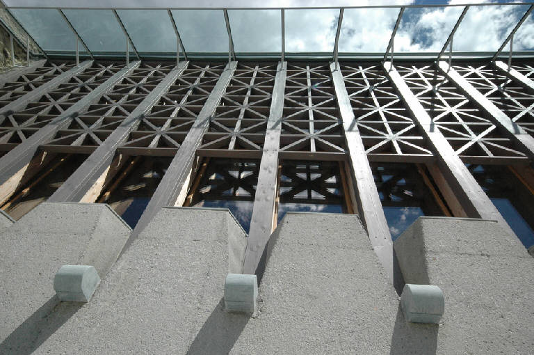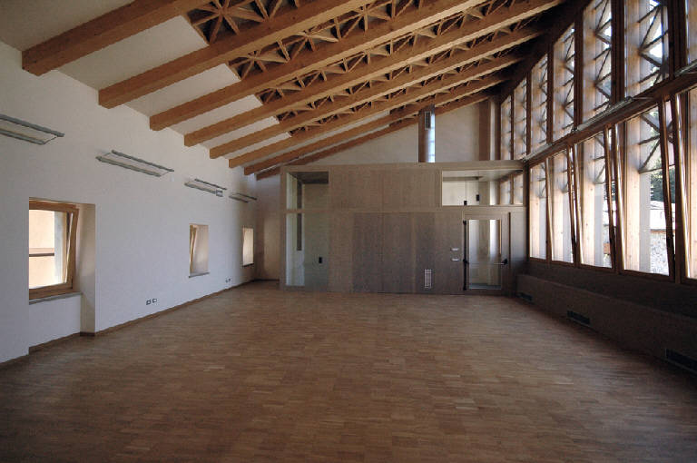 Innovativo è infatti l'impiego dei pannelli a graticcio di legno, realizzati su disegno ad hoc, che assolvono non solo al compito di conferire caratterizzazione formale all'intervento, ma anche di contribuire alla controventatura statica dell'edificio e, ultimo ma non irrilevante, di fungere da frangisole. Innovativa è anche la copertura in lega di zinco-titanio, esteticamente compatibile con i tradizionali tetti in lastre di pietra, ma di queste molto più leggera e stabile, e di certo meno esigente in termini di manutenzione.
