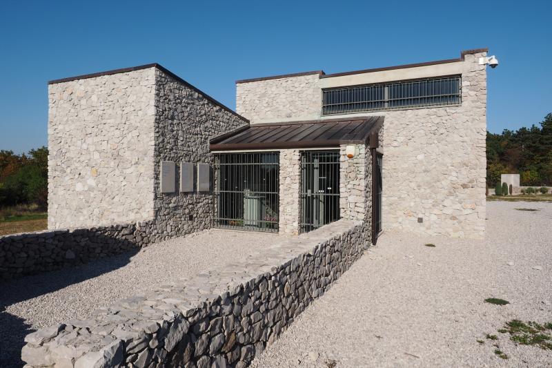 La documentazione storico culturale è contenuta in un piccolo edificio frutto dell’incrocio dei muri di recinzione in pietra carsica e costruito anch’esso in pietra.