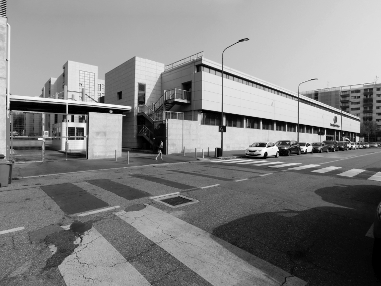 Il complesso produttivo della Farmitalia si attesta su un lotto delimitato dal viale Bezzi e dalle vie Marostica, Massaua e Fornari, verso la quale si affaccia mediante un giardino pubblico.