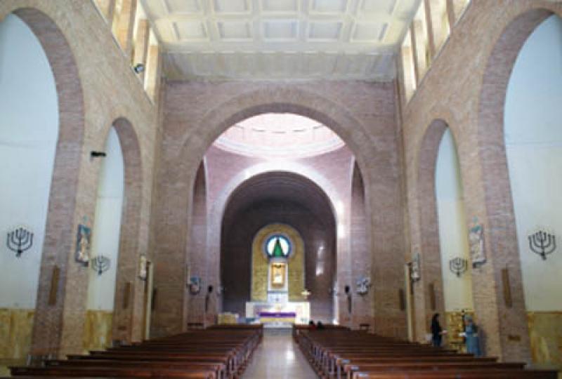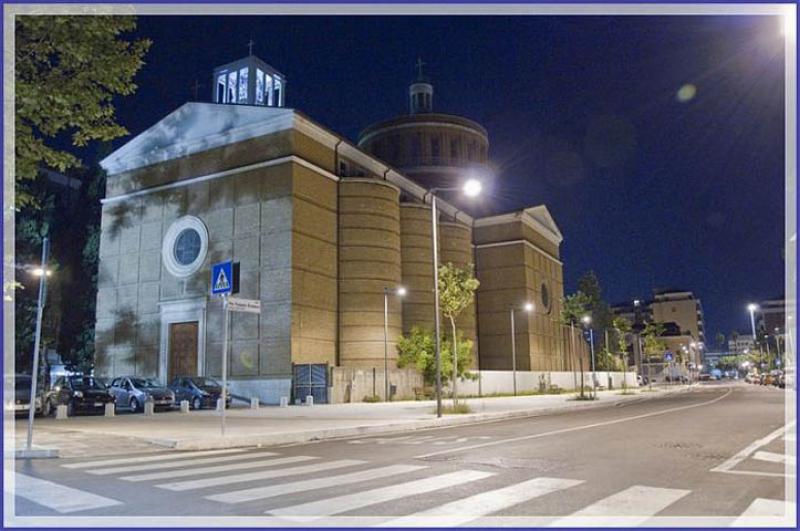 Struttura portante Fondazioni in calcestruzzo cementizio La struttura è in muratura portante di mattoni pieni in laterizio Copertura La copertura esternamente a due falde è costituita da capriate in legno. Internamente, la copertura dell'aula centrale è piana a cassettoni, mentre la copertura del transetto e dell'abside è costituita da volte a botte con costoloni in mattoni. All'incrocio tra aula e transetto s'innesta la cupola con lanterna con lacunari. Elevato mattoni pieni in laterizio Fotografie De Nardis A. costruzione: movimento Novecento (edificazione intero bene) Fonte: http://www.chieseitaliane.chiesacattolica.it