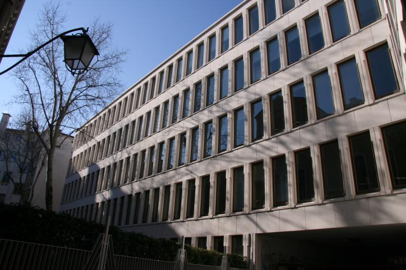 L'edificio, compreso all'interno del complesso tessuto urbano veneziano, presenta una planimetria molto articolata caratterizzata da elementi tipici della città quali sottoporteghi, passaggi promiscui che si aprono sul giardino interno. La complessità della pianta si contrappone alla semplicità delle facciate scandite, su tutti i lati, dal ritmo costante delle aperture a tutta altezza che enfatizzano la verticalità dell'edificio. I corpi principali constano di 5 piani fuori terra rivestiti in pietra bianca