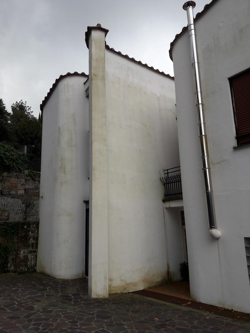 Il sistema dei setti curvi alternati alle colonne delle aperture – finestre, portefinestre e piccoli balconi, favorisce in qualche modo l’adattamento della casa all'orografia del terreno e il suo inserimento nel contesto ambientale e paesaggistico, mentre attribuisce all'insieme un tono fortemente plastico sottolineato dalla posizione delle coperture, arretrate e più basse dei setti stessi. In seguito i setti sono stati malamente coperti con tegole in laterizio per facilitare lo scivolamento delle acque piovane. Le coperture sono state impermeabilizzate con teli bituminosi color terracotta.