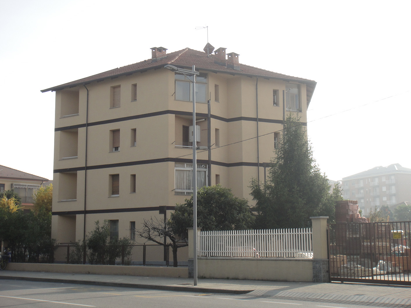 Gli alloggi, tre per piano, sono di taglio differente: a una, due, tre camere da letto. Secondo le prescrizioni normative, dopo l’approvazione ministeriale, si sarebbe dovuta modificare l’imposta della copertura, poiché, per dar risalto al volume puro dell’edificio, non si era previsto il cornicione. I lavori vennero tuttavia svolti seguendo il progetto, come risulta dalle prime pubblicazioni; ma in seguito venne aggiunto il cornicione…». (Tamara Del Bel Belluz, Giorgio Raineri Architetto, Celid, Torino 1998, p. 119)