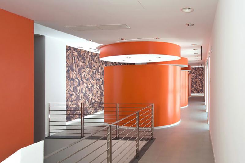La rigidità dell’impianto planivolumetrico - un grande rettangolo non diverso per dimensioni dai capannoni della zona industriale in cui sorge - genera prospetti semplici, seppur caratterizzati dalla trama continua del rivestimento a lastre metalliche modulari di colore bordeaux su cui spicca la stele che segna l’ingresso all'ala direzionale e su cui si innestano rade aperture a nastro e agili pensiline. Al contrario è sorprendente e inattesa l’articolazione degli spazi interni caratterizzati da interessanti e inusuali scelte cromatiche.
