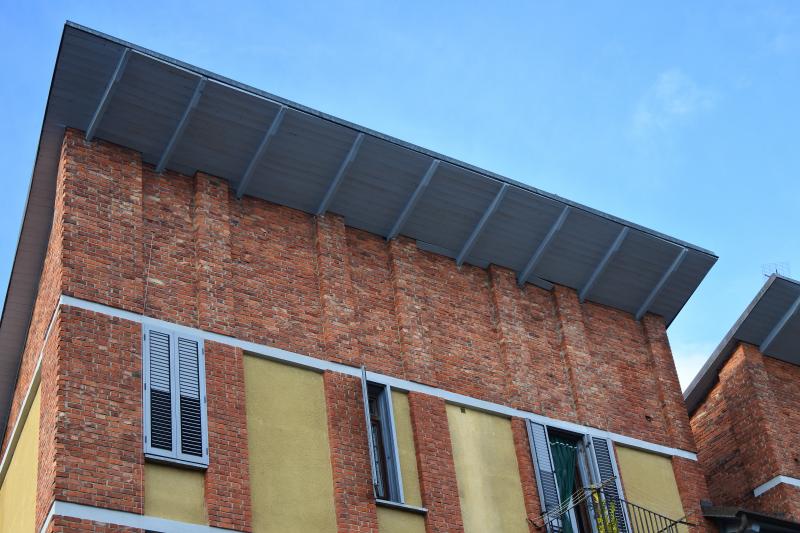 - Materiale di facciata: Fascioni esterni in laterizio contrapposti a superfici intonacate,