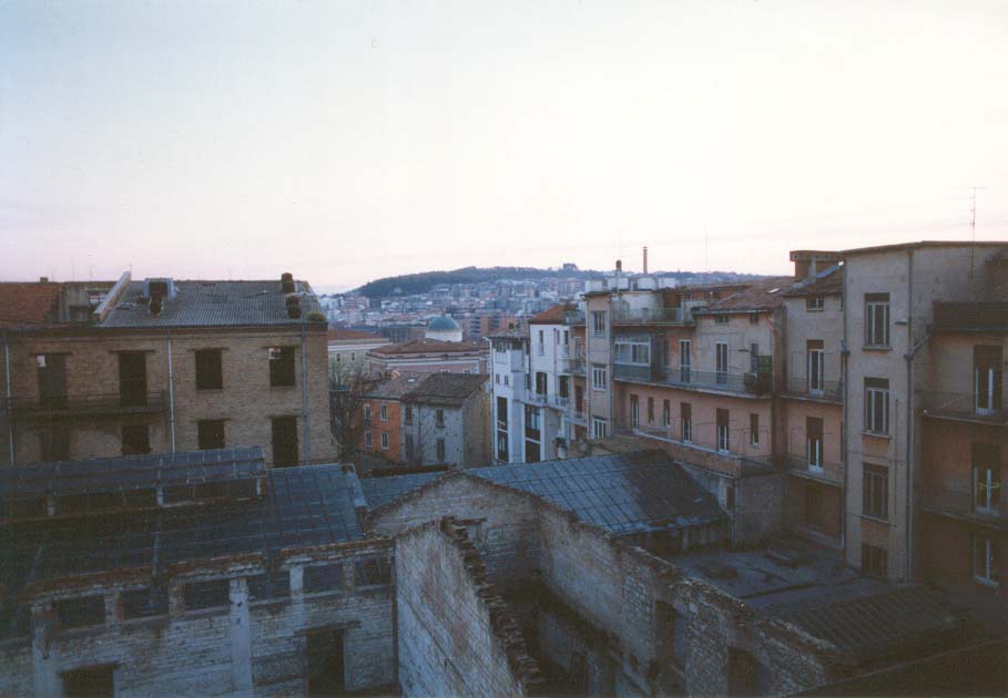 Le linee di forma nascono dall’intersezione degli assi coincidenti con i punti di accesso al vecchio Molino collocati tra via Veneto/ Corso Bucci e via Cavour. L’intersezione determina la parte del costruito collocata a nord e ad est degli assi pedonali, e contestualmente genera una grande piazza pedonale, che funge da copertura ai parcheggi interrati e punto di aggregazione di tutte le attività residenziali e direzionali, e un’area tra l’istituto Pilla e le antiche mura di confine del Molino verso l’edificio INA, dove trova sede l’auditorium. L’intervento a completamento delinea anche una netta suddivisione tra la proprietà pubblica e quella privata; piazze, auditorium, percorsi pedonali e un livello parcheggio restano di uso pubblico, la restante parte è destinata alla proprietà privata. Città nella Città, nel suo spazio centrale raccoglie e valorizza il linguaggio dell’intorno; la sovrapposizione dei linguaggi, moderno-antico, diviene ricchezza e rimanda alla memoria di una vita vissuta in quegli spazi. I prospetti non fanno fronte sulle strade principali, ma all’interno degli spazi pubblici ricavati all’interno dell’area disponibile.