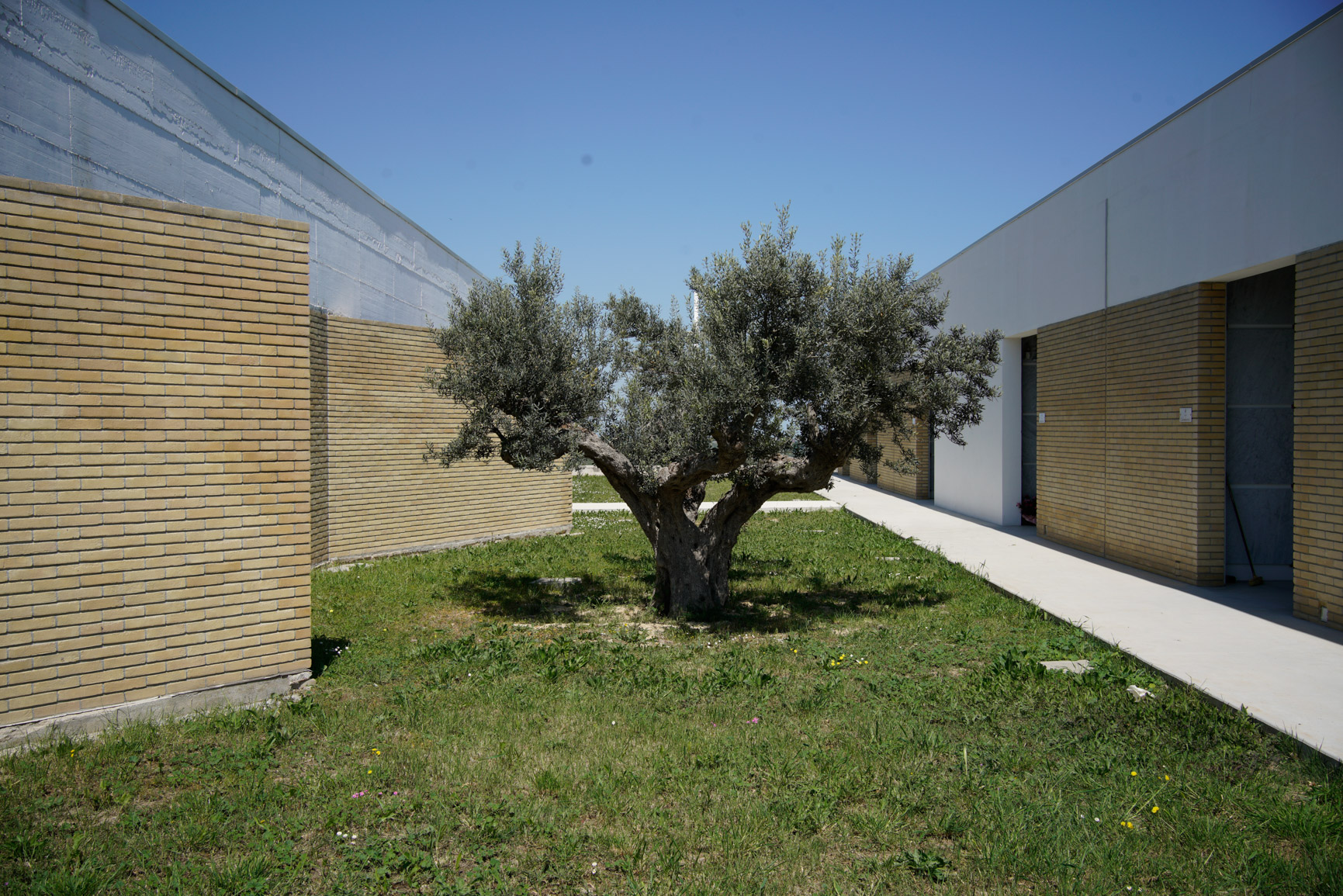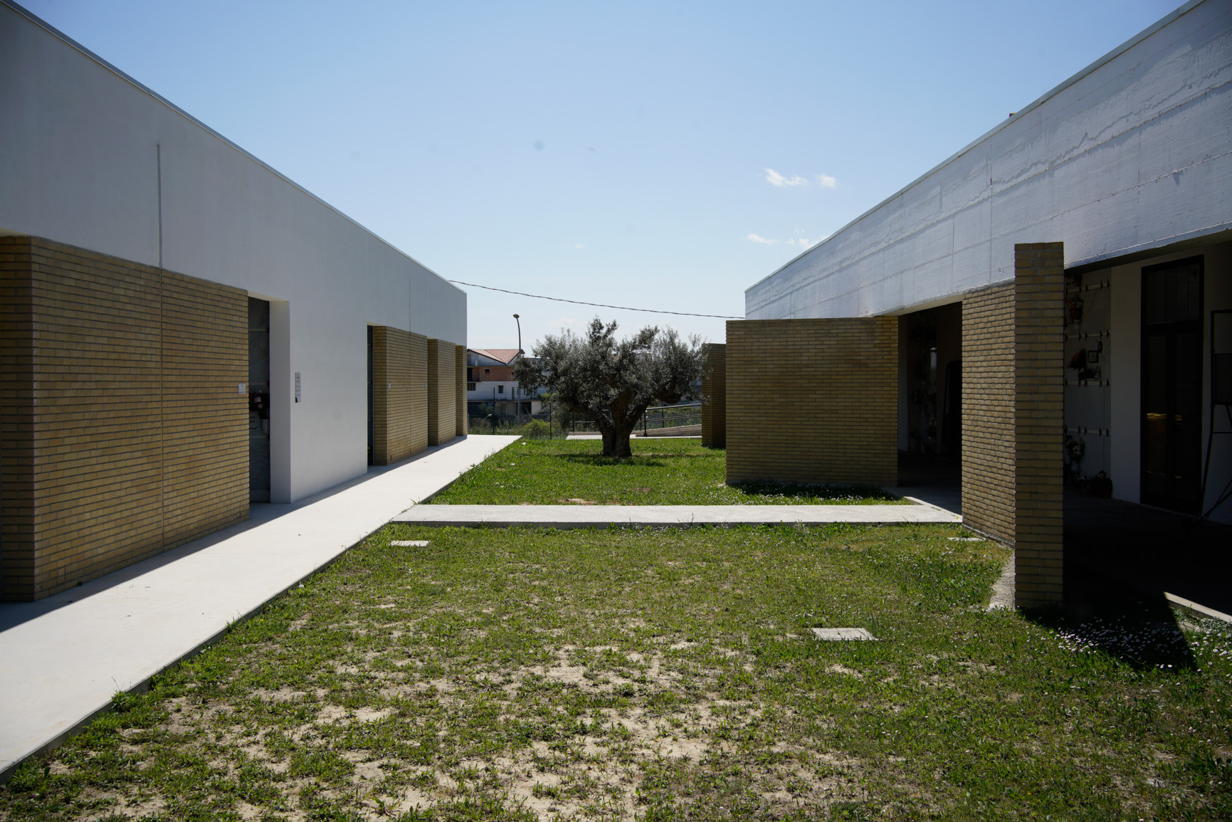 L'estensione del cimitero di frisa è composta da due volumi parallelepipedi bianchi, il primo in cemento bianco faccia a vista e il secondo intonacato. Sui fronti antistanti di questi volumi, inframezzati da un prato che ospita una pianta di olivo, sono praticate delle aperture, segnate da setti in mattone faccia a vista, che si aprono verso il prato, nel caso del volume di cemento, o che rimangono planari alla facciata, nel caso del volume intonacato. Dalla parte opposta del prato, centralmente rispetto alla prospettiva definita dai due corpi architettonici c'è una croce di acciaio pitturato di bianco, che si staglia verso il paesaggio collinare del Chietino.