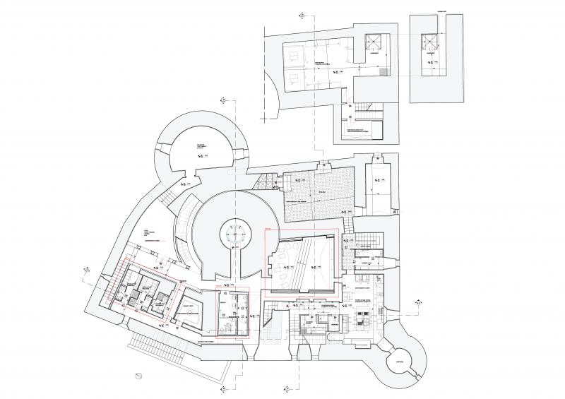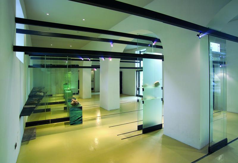- Strutture: edificio storico: muratura portante; allestimento: acciaio inox e vetro