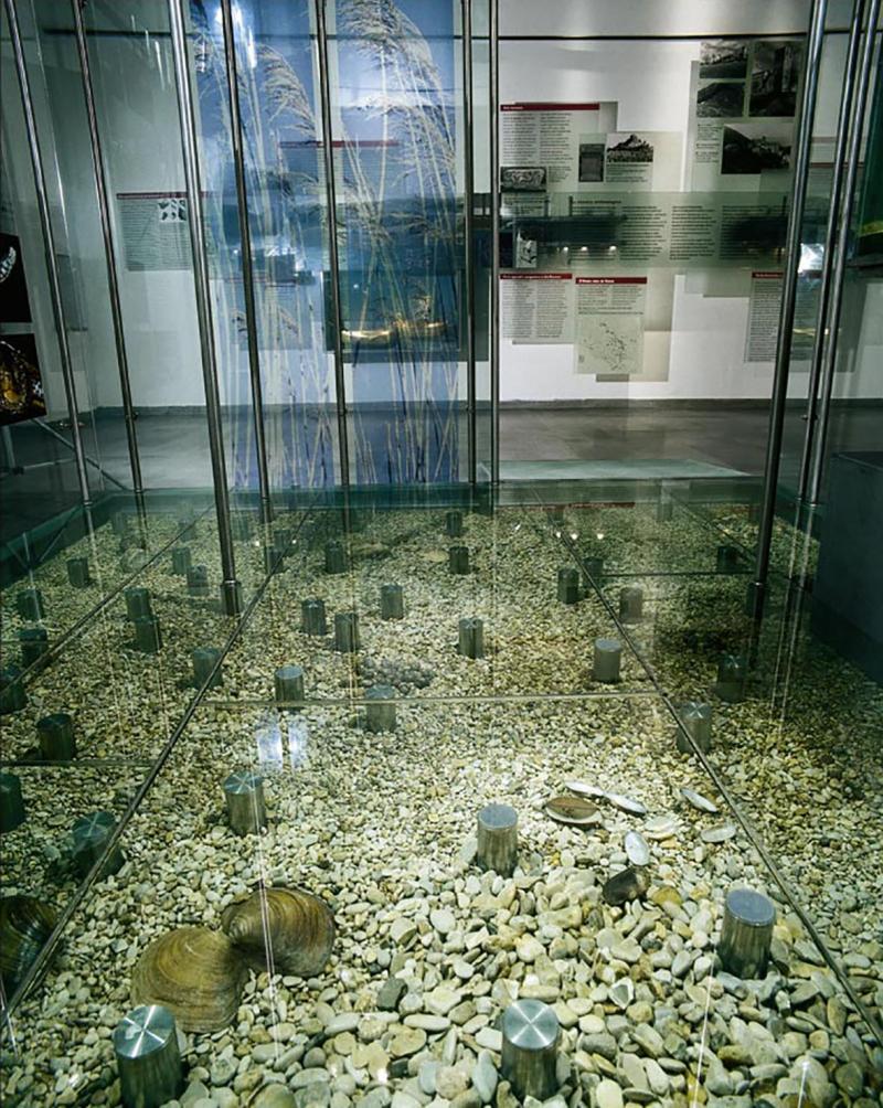 L’obiettivo dei progettisti è quello di ridurre quanto più possibile la distanza tra visitatore e oggetti, in modo da rendere l’esperienza museale attiva e coinvolgente. Da qui la scelta di utilizzare per l’allestimento acciaio inox e vetro, materiale, quest’ultimo, che richiama colore, trasparenza e caratteristiche di riflessione dell’acqua.
