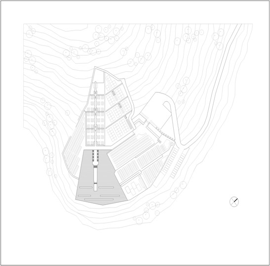 Il cimitero è composto da un piano sotterraneo dove trovano spazio i loculi ed i corridoi distributivi. Si accede a questi spazi attraverso una scala che, delimitata da due setti in calcestruzzo armato, collega il piano ipogeo con la quota della copertura. La copertura del cimitero è un tetto giardino che consente la mimesi dell'intervento. La soletta, anch'essa in calcestruzzo armato, è leggermente inclinata a seguire l'andamento degradante del terreno; in corrispondenza dei corridoi sottostanti sono stati operati dei tagli che consentono di filtrare la luce solare.