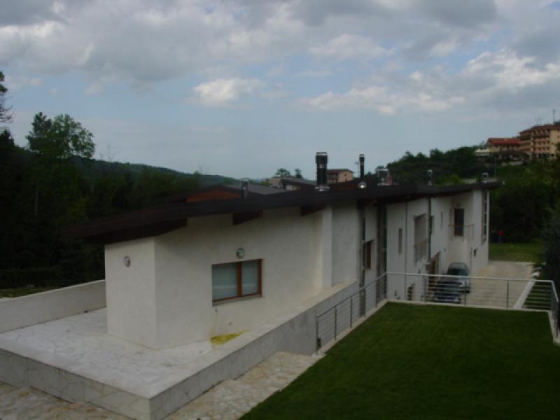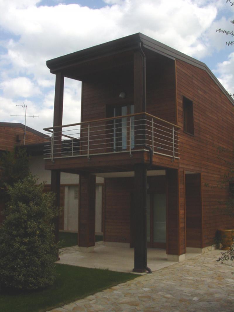 La residenza, distribuita su due livelli, è costituita da un edificio in linea a pianta irregolare, con l’innesto a pettine di due volumi trapezoidali che si protendono verso il paesaggio circostante.